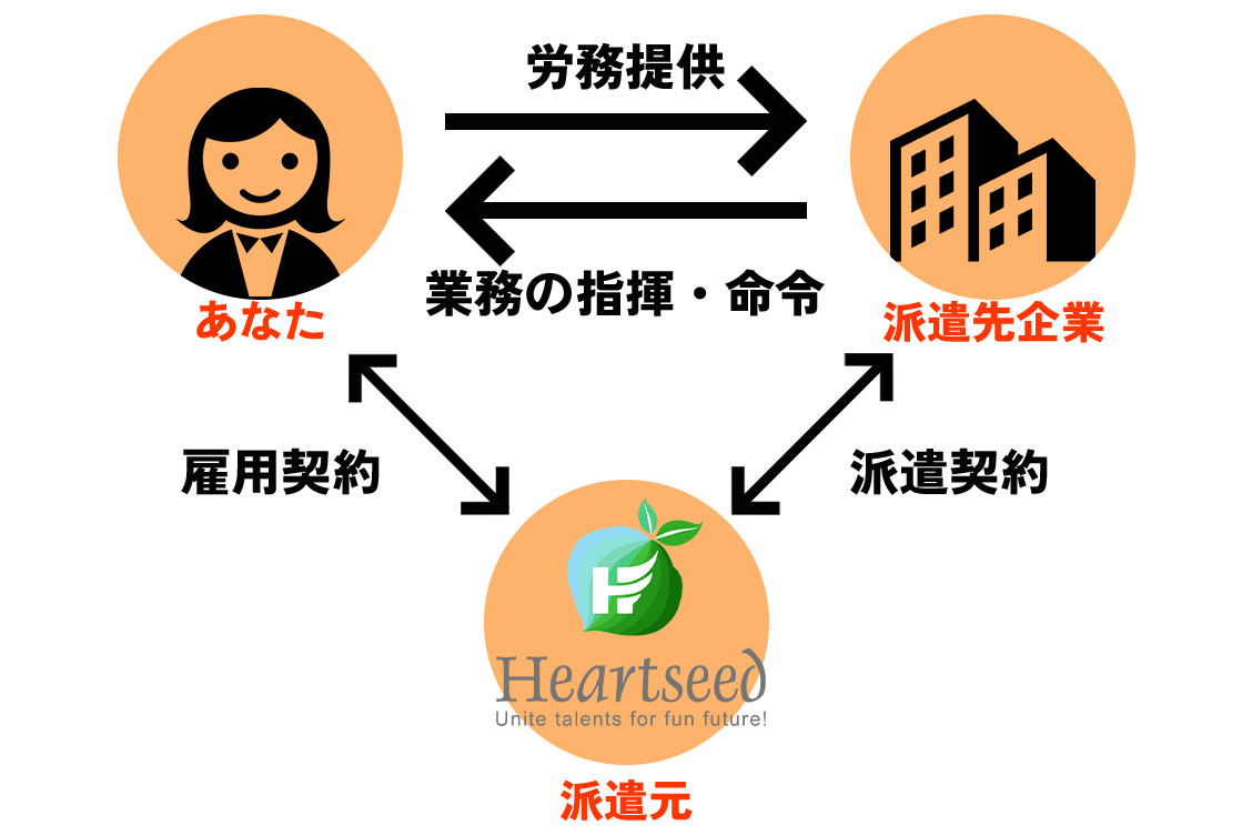 派遣会社がお仕事を紹介し、派遣先企業で実際に働く期間や条件が派遣契約に基づいて決まります。